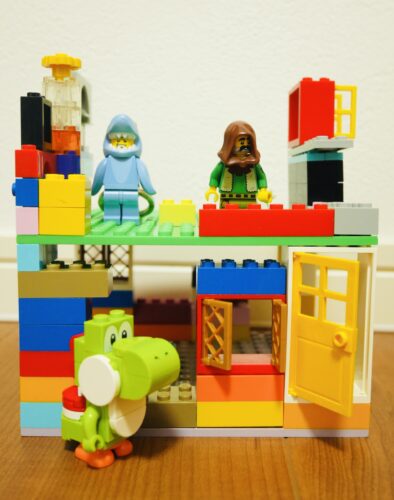 自分で自由に組むのは家など簡単なもので、親と一緒に作り方の説明書を見ながら作っていました。