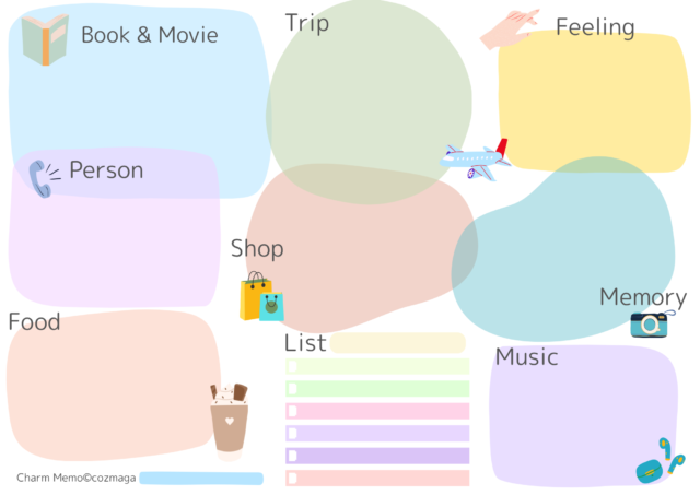 そこで実際に自分の好きなデザインで、自分が好きな曲や、見ると元気になれる映画、今まであった幸せな出来事などを書けるシートを作りました。