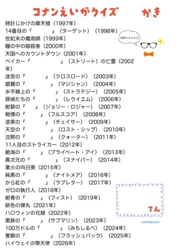 名探偵コナン劇場版 タイトル漢字書き取りクイズ 2026最新版