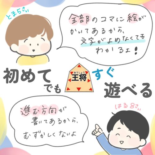 ・進む方向が駒にかいてあるので初めてでもすぐ遊べる