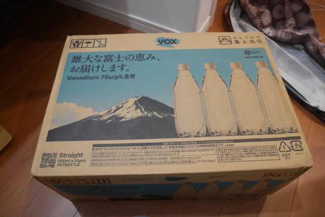 我が家の宅配物で大きなものでよく購入するのが、炭酸水です。500mlのペットボトルが35本入った段ボールを入れてみました。