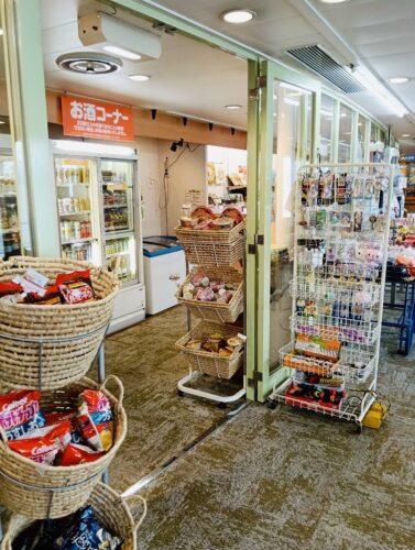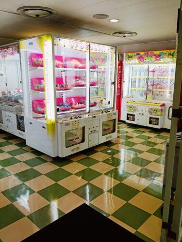 レストラン、ゲームコーナー、売店をつなぐ通路です。窓側はテーブルと椅子が置いてあって食事をしたりくつろげるスペースになっています。