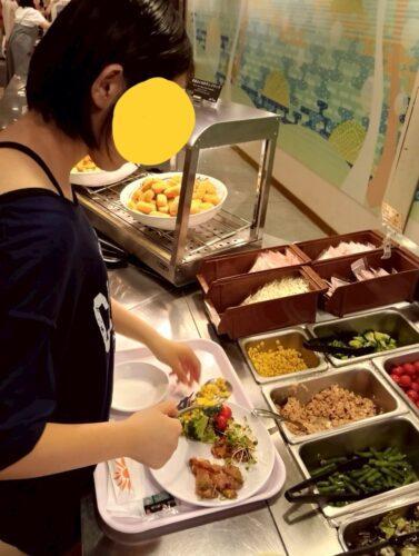 カレーは2種類、おでん、やきそば、ごはんも白米と味ごはんの2種ありました。おかずも目移りするくらい色々あります。デザートコーナーはフルーツやミニケーキ、アイスクリーム(チョコ・バニラ)もあって子どもたちも喜んでいました!