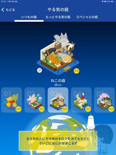 宿題の時間に応じてアプリ内のすごろく(○○の庭)のマスを進めることができます。