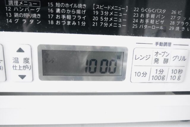 我が家のレンジは1000wがあるので、2分温めます!